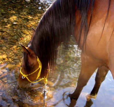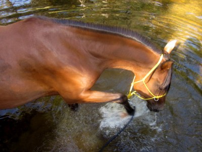 I ponied Joey down to the creek crossing by the Wildlife Area this morning. It was about 7 miles round trip and Joey was tired by the end of it! Probably mentally as well physically. He was a very good boy but there was *so much to see* plus when in his life has Joey ever gone 7 miles? Blaze was a very tolerant pony master (kitted out in size 2 Renegades in the front), though was spookier than normal which is just typical–when you want them to be their calmest they act silly. I got a little worried after a giant road-filling dump truck came roaring at us on a narrower stretch of road that hasn’t hosted a car in the last half dozen times I’ve ridden it, but fortunately after that it was all pretty mellow.