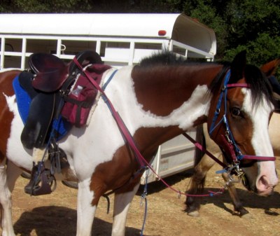J’s mare Sedona has been getting rubs from the Easyboot Epic gaiters, we corrected most of that today with copious amounts of baby powder on the gaiters and slicking down her legs. But seeing me slide on and Velcro the Renegades after powdering, slicking, banging, levering, strapping, locking, and finally pinning on her own front boots–well let’s just say there might be a Dragon Fire Red order being placed in the near future. 😉 Speaking of, I passed on my snazzy red breast collar, the first endurance breast collar I ever bought (7 years ago) to Sedona. It’s still in great shape and looks great with the red and blue she already has.