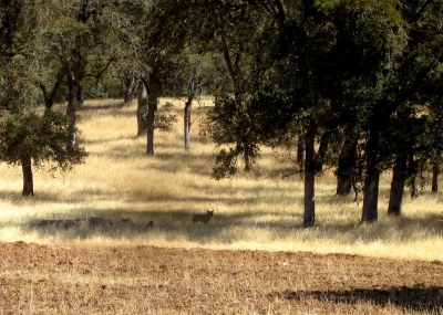A coyote was stalking a baby deer who was lying in the shade of a tree, across the valley. We rode right through the middle of nature’s drama