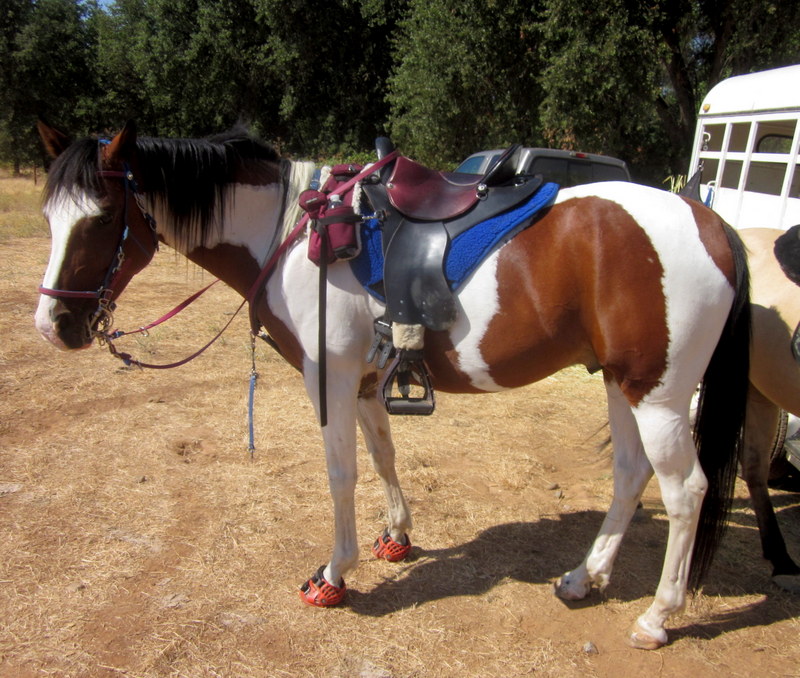 Renegade Clumsy test results? I did indeed have a boot twist today, and a boot come off. Here’s why: Chief is transitioning to barefoot after years of being shod in the front. His front hooves aren’t in great shape right now, in fact they are kind of a hot mess. He has had one trim cycle with my trimmer, D, but it’s going to take months for him to grow out healthy, barefoot hooves. There is some significant chipping on his fronts and he has a nasty hoof wall crack/flare that I almost couldn’t get a boot over today. My rasp wasn’t in my boot bucket as I thought so I had to fit a technically too-big size 1 over the cracked hoof, and a size 0, which actually fit, onto his other front hoof. The boot twist and loss came, predictably, on the size 1 boot, which ideally would have been a 0. I was still pretty impressed with the boots, we rode 10 hilly miles with multiple water crossings and the only boot loss came while charging up a steep hill after water, so pretty much the hardest situation for boot retention.