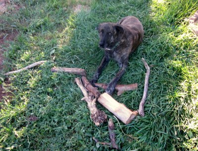 Some dogs play with sticks. Our dog, Catahoula mix, Jay, collects firewood: