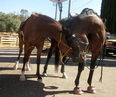 Blaze has always been rather disdainful of other creatures, but he and Joey are really good buddies. Despite the fact that Joey gooses him constantly out on the trail, turning his long nose back and forth to ogle. Blaze grows about 4″ every time but never gets grumpy 🙂