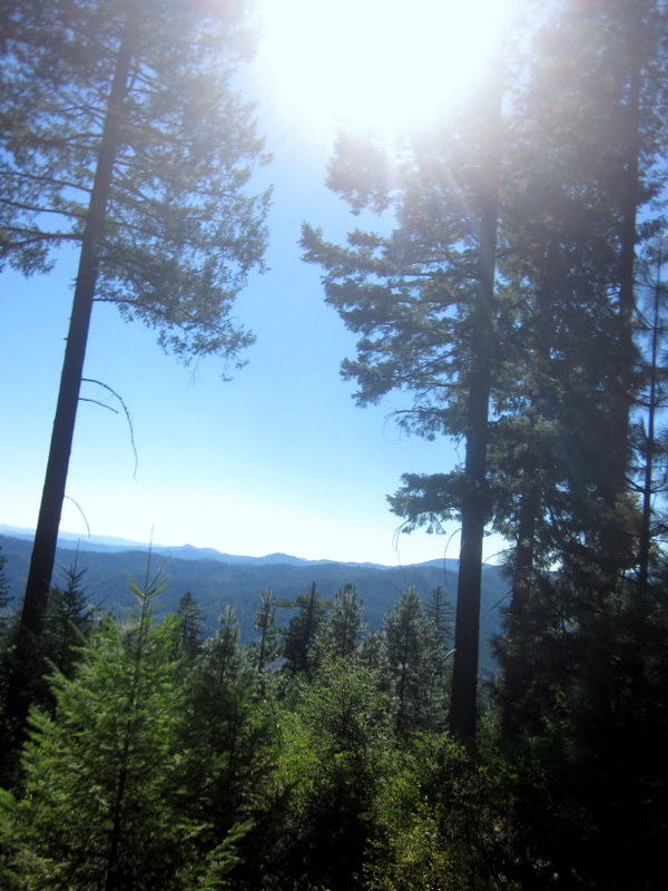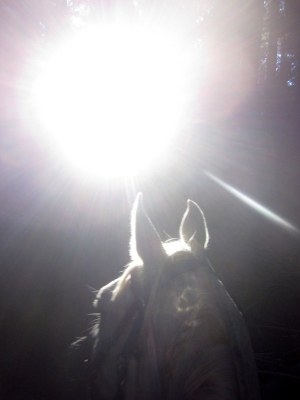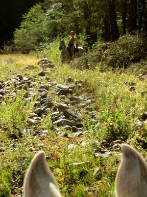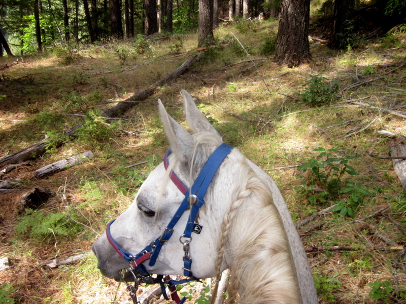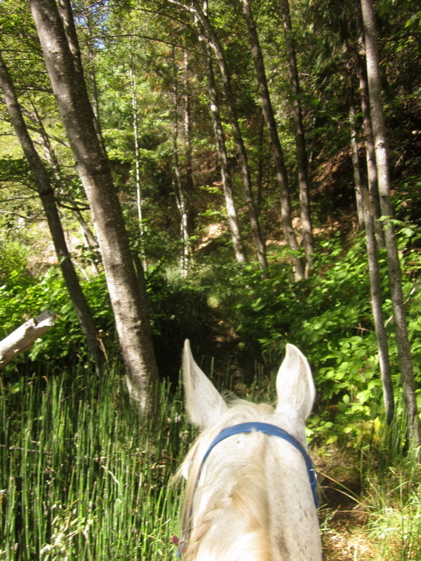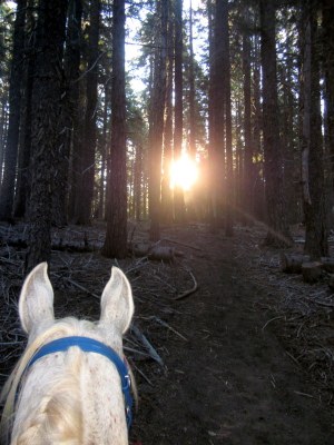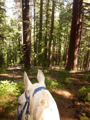 Beautiful trees, big gnarly rocks, cool air, a good horse–HAPPINESS!