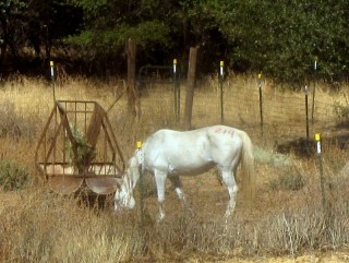 So there we were, Saturday morning, and Desire was booted and saddled, all clean and dry in the cold morning. She was behaving fairly calmly for the start of a ride, minimum dancing for booting and tacking which was a mercy. Then as another horse passed by our rig headed for the start she suddenly did a sideways dance, crammed her right hind hoof and boot into her full water bucket, freaked out when it cracked, kicked the thing 20 ft, and danced all around in the dust until I settled her.