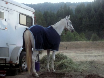 I collected my ride shirt and crew bag in the very chilly a.m., said some goodbyes, and was packed up and on the road by quarter to 9. It was a solid 5 hour drive home. Desire got in the trailer in the morning in 40-something degrees in a fleece blanket and by the time we were home it was afternoon and 95 degrees, but she hauls like a champ and was happy to be home and devouring yet another giant mash.