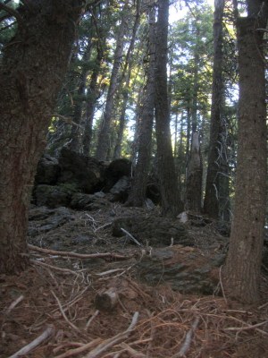 The pleasant beginning of the hand cut trail that got technical later on–no photos of the intense footing as I was too busy keeping us both upright and moving forward!