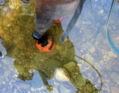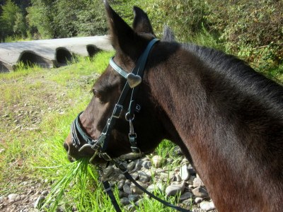 Turning around at the water crossing, nice to wade in and lots of great grass for the horses.