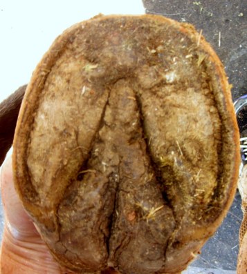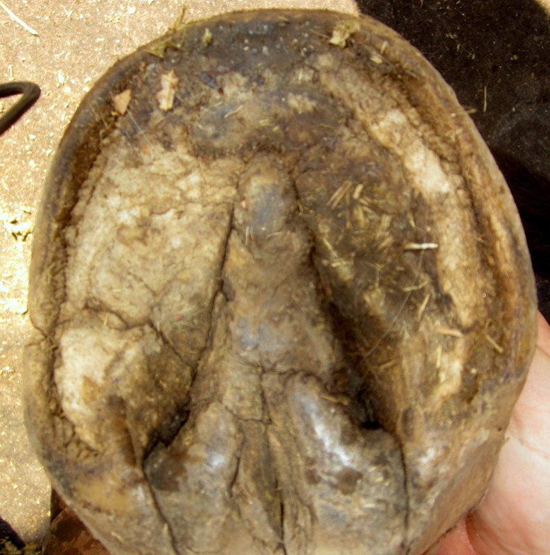 These are Blaze’s left front and right front, respectively. Please feel free to say any and everything about them, any readers who maintain their own hooves. My camera literally died and shut off as a snapped the right front, so these are the only hoof shots I got today.