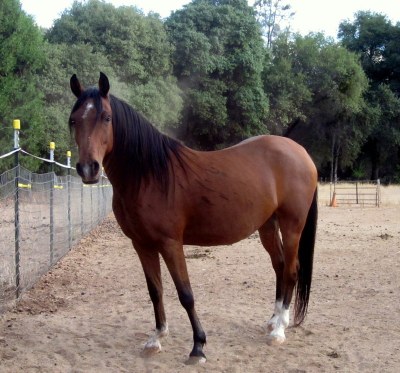 Yesterday I took advantage of the cooler weather and hauled Blaze down to my trimmer’s so she could supervise me working a full 4 hoof trim on him. I was running late and pulled him from the field and put him straight in the trailer, skipping the usual grooming and primping routine. He came out of the trailer at D’s with a sweat on and an A-T-T-I-T-U-D-E. He was an absolute shit to work on, using me as a fourth leg, pivoting, moving, yanking his legs, blowing, snorting–he even started pumping his hind legs when I was working on them and finally kicked out and knocked the nippers out of my hand! I was so shocked I froze but D was on his case immediately. After she put him back in line he was quite polite and a bit apologetic.