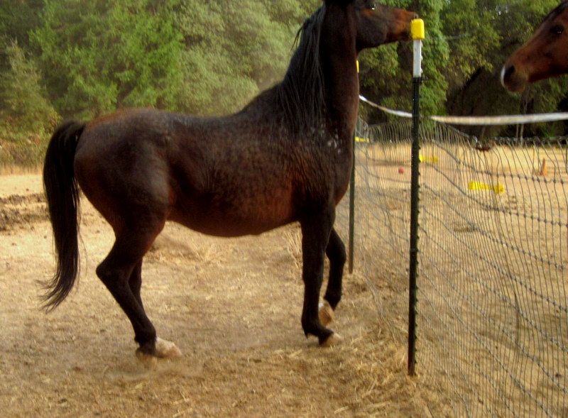 Due to his injury and lack of time, the trainer hasn’t worked him in a few weeks. This evening he and Blaze were REALLY having it out over the fence, charging it, rearing, and trying to bite each other’s neck. *ahem* Gentleman. And I use the term loosely.