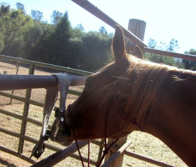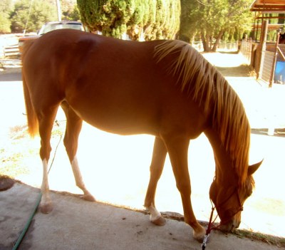 Sheza was shoving her nose in my arms at Desire’s halter after I put D away so I considered that volunteering for a pedicure. By the way, Desire’s halter did *almost* fit Sheza, the nose piece is too wide but otherwise fit better than her own once-again outgrown halter. Sheza seemed quite chuffed to be coming out of the pasture on her own, despite mini Napoleon and momma Desire yelling and causing a ruckus when I took her away. She is 18 months old, 14.2 hands, and will be wearing a 58-60″ blanket this winter.