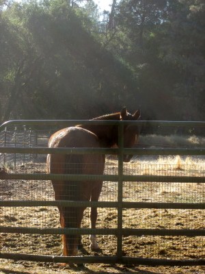 I trimmed Sheza’s fronts in an epic battle on Sunday, and today while waiting for the equine bodywork gal to make it out for Desire, I trimmed Sheza’s hinds. She was much better for the hinds and I got them done in half the time, taking out lots of old gunky sole and shedding frog, and take plenty of toe. Now we are back around to Desire again, she’s got some toe to take off, and I did Blaze’s fronts the other day but need to do his hinds. I am loving having the knowledge, power, and good tools to be able to take care of my horse’s hooves whenever and wherever I want!