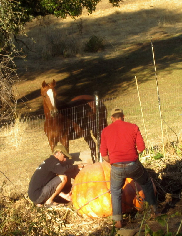Our giant pumpkin finally stopped growing. My husband really wants to move it, something perhaps best prepped for before the thing weighed 900 lbs. 🙂