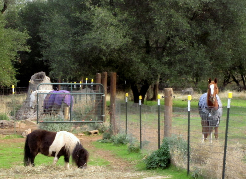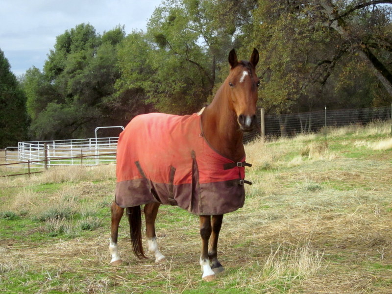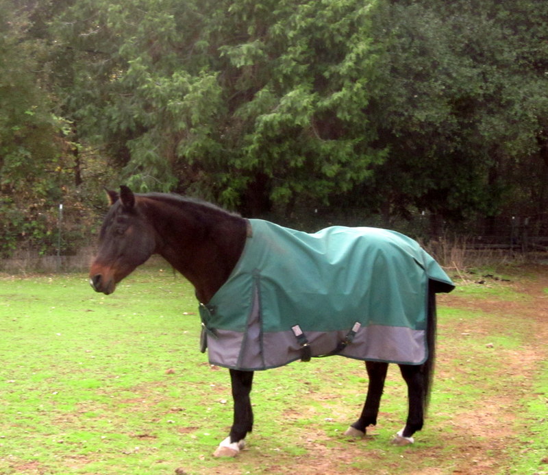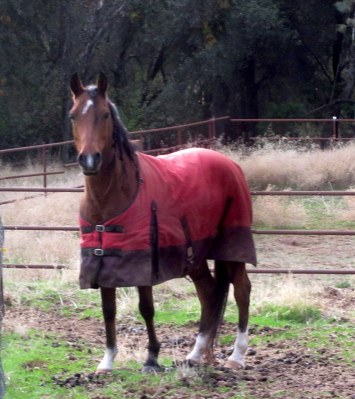 Sheza is still very squirrelly in bad weather and it was very cold and windy this morning, her least favorite sort of morning. Surprisingly she crammed her head into Desire’s halter and I took her to the cross ties and put her new blanket on. Which. Is. Too. Small. AGAIN. Le sigh. First time foal owner here and I have now failed 4 times consecutively at blanket buying!! I swear I measure every time, but if they are long enough (usually barely) they aren’t long enough on the sides to cover her big ole body. Hmmph. So she doesn’t fit in a 60″ now. Still, proof below that she is out in a blanket at some point this winter: