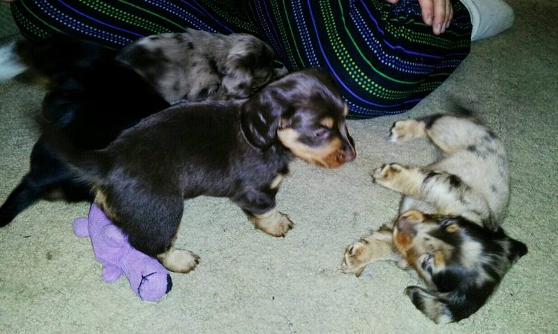 Yes, I am told by the breeder that dachshunds can come in any color combination possible for a dog, including the blue eyes. His chocolate dapple brother has blue eyes too. Very striking 🙂