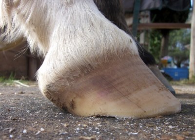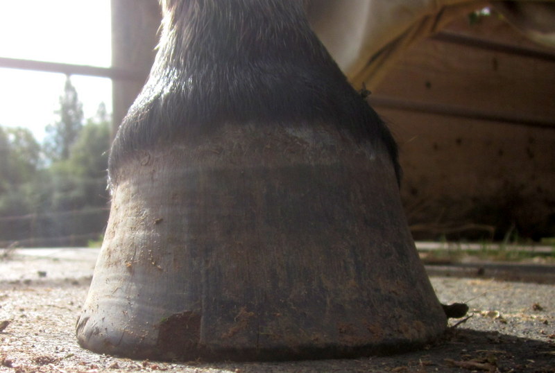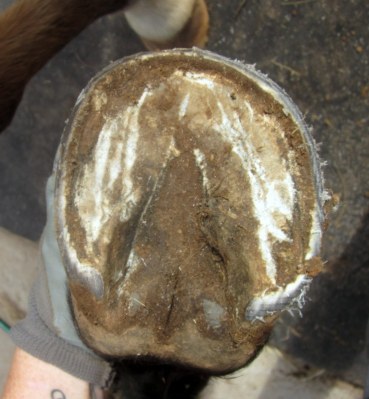 Joey hooves haven’t been messed with in a while. This is a crappy photo of left front, he isn’t as upright and funky look as it makes it look, but shoes toe before quick rasping. It is QUICK because he doesn’t have much patience for it and I try to make things short, sweet, and successful with him, especially if he hasn’t done mileage yet!