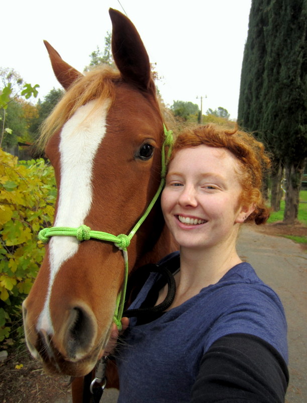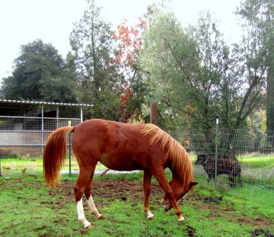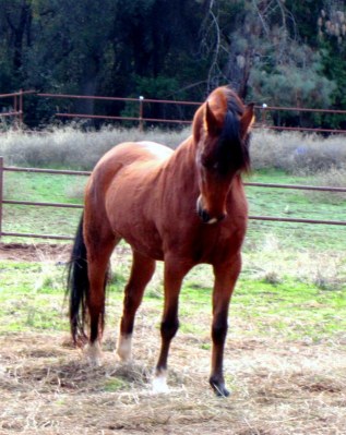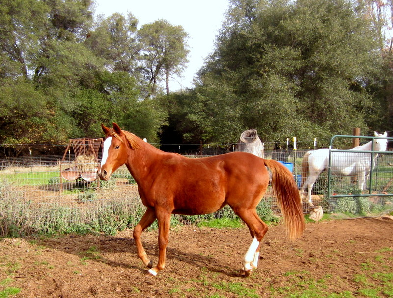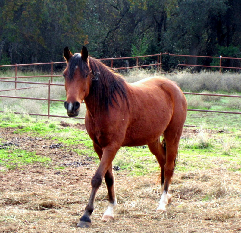 The colors are vibrant at this time of year in the foothills of Northern California. It’s not quite the rainbow of autumnal splendor witnessed in my childhood home in Maine but the green glow of new grass against cold grey oaks and the rich winter coats of the horses is still quite a visual feast. I love Arabs for many reasons, not least the fact that just loafing in a field they can be so darn gorgeous!