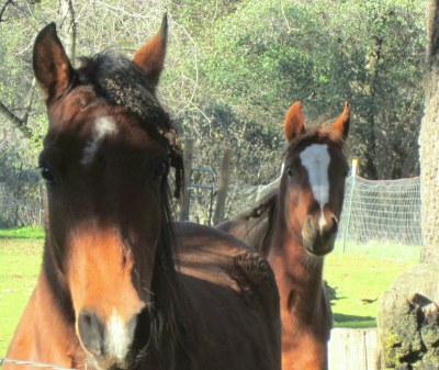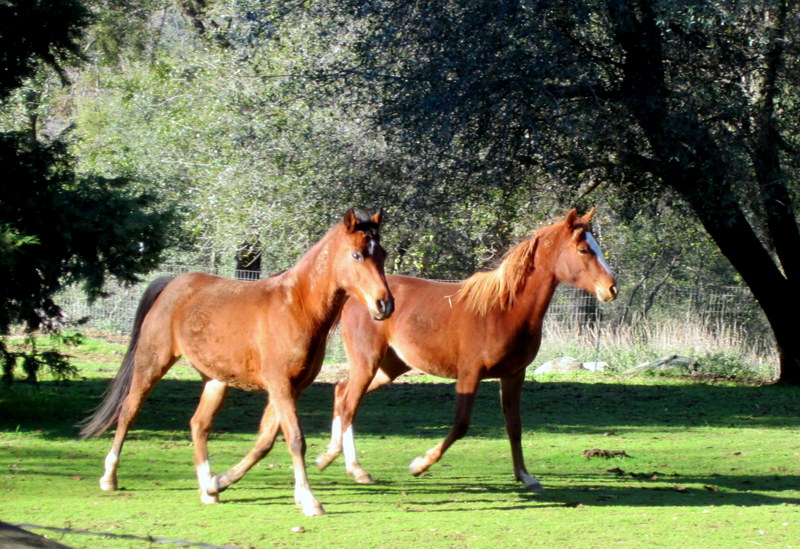 We had a nice little cruise up the ridge and back and were greeted by the Sheza-Joey committee upon our return. Pretty wild that Joey, the bay on the left, is 7 yrs old and Sheza, the chestnut, is only 20 months. A new year has started and Nope, she isn’t getting any smaller!