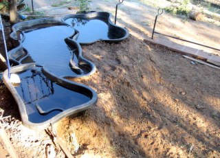 We also*finally* cleaned out and redid the long planter box running along the side of the porch that has mostly been a weeds/large dog hangout station since we bought the place. It is now currently full of lovely rich dirt and will soon play host to whatever shade-loving plants we decide upon. We are also in mid-repair on the corner of the lawn next to the planter bed where a single small plastic pond liner had been sitting, now turned into 3 small ponds with a waterfall effect, soon to have a retaining wall and and some landscaping in to complete it: