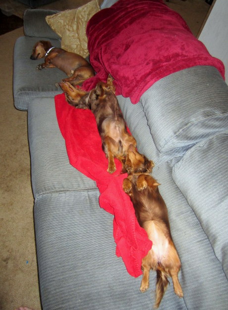 Aww, Sweet of him to come out with you. And having had dachshunds most of my life that its totally the hot dog pose, lol.
