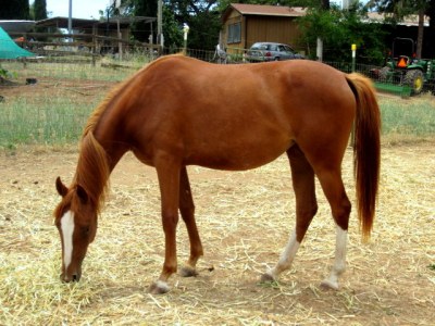 I cleaned up their hooves today and got a few pictures of the redheaded filly beast, since it’s been a while. Sheza is 26 months old now: