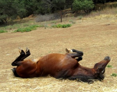 Blaze has general contempt for being clean and tidy. Actually even if you halter him,walk out, turn in a circle, and put him right back in the pasture he will roll and roll like he’s been contaminated. Certainly keeps him flexible and well adjusted!