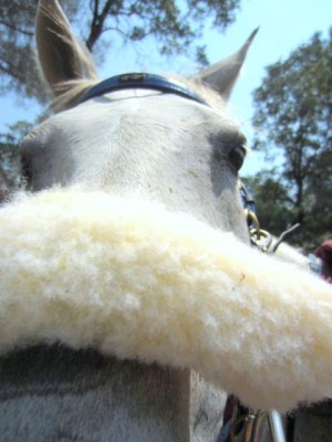 1. I replaced the noseband on my s-hack with one of the beta nosebands…this is just one example, most of the biothane tack-makers will do them these days: http://www.hought.com/end.s.hackamore2nb.html. No rubs, and doesn't pick up as much stuff as a fleecey cover.