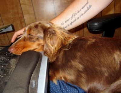 And finally, here is my computer helper, Rip, who is now 10 months old. He is an accomplished lap warmer and occasional assistant typist.