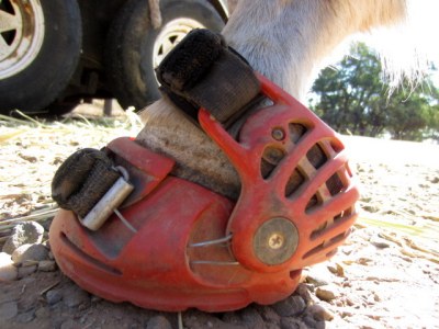 My theory now is to give Scrap 2-3 days rest and then boot him all the way around and do the 6 mile ride from my house that has the steep 1 mile hill. I may not even go all the way up it but regardless it will be a good test to see if any of those ouchy downhill steps come back or if he is getting used to moving in hind boots and comes down the hill nicely. As for sizing, I’m hopeful that the new Renegade Vipers will be a good fit for him because they are measured in millimeter increments and have more between sizes than the old 0,1,2 sizing system. They are also supposed to fit hooves that aren’t so perfectly round, which definitely applies since Scrappy’s hinds are much “pointier” than the old style round boot shells. The only old style boot application left untested was a brand new size 0, as all the 0s we were working with were used and no doubt stretched out somewhat. Still I will probably measure his feet in mm and go the Viper route.