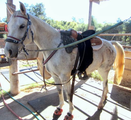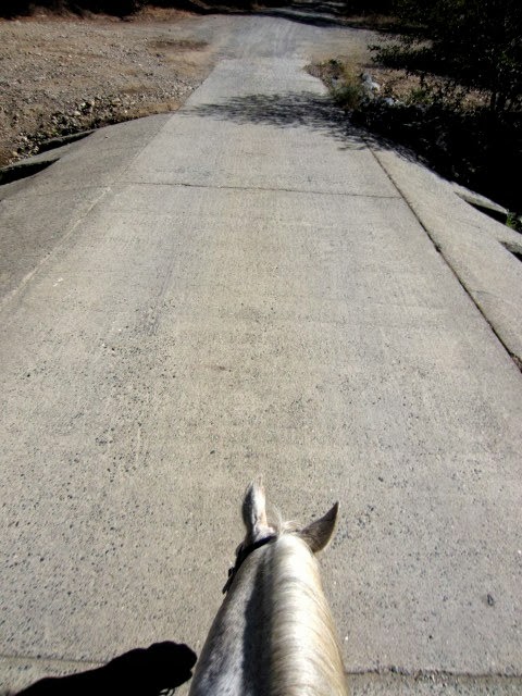 After being out of town last weekend, we had family visiting here over this weekend and are now due to leave this Friday for Chamberlain Creek 50! Today was crunch time on getting Scrappy out for a few miles, making sure he was moving and feeling good, tack and boots were working well, and his hooves were just how I wanted them. Scrappy has been here for 2 1/2 months now and I still hadn’t ridden him out from home, so on went the gear and out the front gate we went!