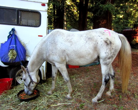Allow me to digress here and share the significance of this ride; I grew up in the Mendocino area and Chamberlain Creek was the first AERC ride I ever attended, as a sponsored junior aboard my stunning (no really) buckskin Appendix mare. The mare, Misty, had never finished a ride before I bought her because she was pretty high strung and had buddy and calming down to pulse down issues. Mary, the lovely woman who sold Misty to me later allowed me to board with her and one day told me that she rode endurance–and that meant riding all day! I quickly signed up for that and joined her and her endurance friends on 20 mile weekend rides, and rode the bus to Mary’s house a few times a week to blast around the woods on my mare too. We completed our first Chamberlain Creek LD foray in good style and again, an hour faster and in the top 10, the next year. I had to sell Misty to go to college but I have returned to Chamberlain Creek ride a number of times since over the last 12 years on a handful of horses and somehow have always ended up doing the LD! Last year I finished the LD on a friend’s Pinto for his first ride, etc, anyway this ride has been central to my endurance life and I still haven’t done the 50. This year, I was pretty damn certain that barring a fluke, a rock with my name on it, etc, Scrappy and I would be finishing the 50 together for both of our first time.