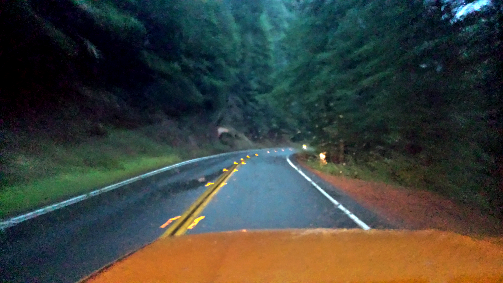 It rained all of Saturday night and I was grateful for both my waterproof tent and the giant Redwood we were camped under. I was snug and cozy but Scrappy was looking rather like a drowned rat even in his fleece and raincoat at 5 am when I gave him more dry food. I had put most of the important stuff away the night before in case the rain was early, so I  was packed up in no time and after waiting for some people to, ahem, stop blocking the road, we were out of camp by 7 for a wet and windy drive home.