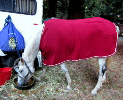 No storm yet at our house when we arrived early afternoon, which was a nice relief after that soggy morning. Upon turnout Scrappy flew across the field with his tail in the sky and proceeded to run the hill with Sheza filly, so I’d say he is feeling just fine. It certainly didn’t go according to plan but it was still a beautiful weekend in the redwoods with family and friends that I returned from with a sound horse, so I really can’t complain!