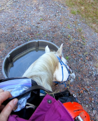 We were jogging along happily in our own pocket for pretty much the first 14 miles, both snacking, plenty warm, enjoying the morning. Scrappy drank really well as usual and was moving great under me, stopping occasionally to turn his head back for a bite of carrot. He made it all of 7 miles before starting to snatch at passing grass. I call him Superguts.