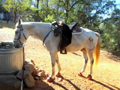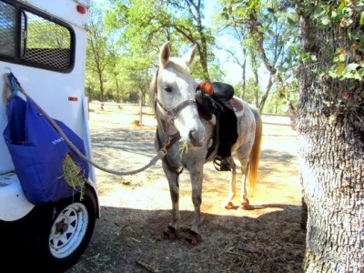He peed in the trailer  again (ewwie) and had a big drink before we rode out