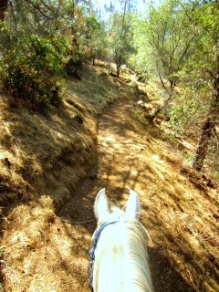 The second key to today was that I carried a crop for the first time. I’ve noticed that Scrappy does NOT like heel pressure on his sides, he will in fact turn and glare at me sometimes if I use my heels, but a vocal cue and tap from the crop on his rump when necessary today kept him focused and forward without ever getting resentful. I don’t know if he is just that sensitive on his sides (he gets half a tub of Vaseline in his pits on every ride or else) or if he was ridden with spurs in the past and is sensitive to heel pressure now. Mostly he chooses the correct speed and footing for things but he also does like to see if I am paying attention and sometimes I want different things than he wants to give, so I was excited to see how a refocusing tap with the crop could get the desired effect harmoniously. Again it’s that fishing a different river analogy, because my mare Desire would get *pissed* and detour at Bronc Street if I used a crop at all. For her, when she was being out of line spooky-ridiculous, a sharp word and a slap on the neck (and like 40 more miles) was the thing.