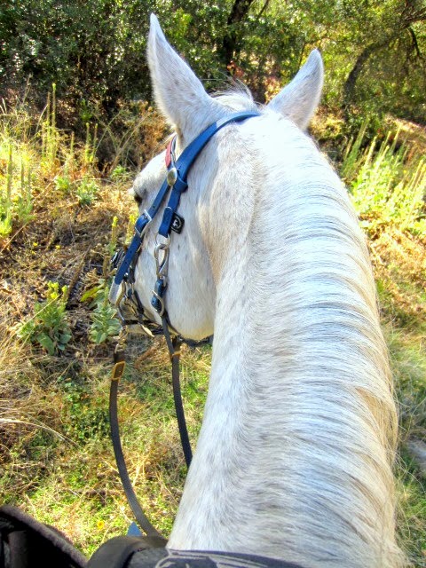 Aside from great trail time that we flew through at a powerful trot or free, happily given canter, we also passed one set of riders twice today and another set of riders elsewhere, plus a bicycle, barking charging dogs, crossed streets 4 times, and DID A FLYING LEAD CHANGE! What?! I know. I didn’t know Scrappy even knew what leads were. Okay, not really, but basically he is a well broke trail horse who carries himself beautifully but has no formal dressage or arena training. So far in our journey he has cantered, but generally either wasn’t wild about it or put his head low and did a running crow hop. Today, in all 4 Rennys, he cantered happily on both leads, and around a slight left hand turned he just did this fabulous flying lead change! It was glorious.