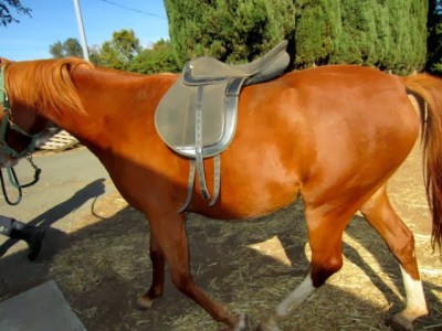Finally after wearing it for 10 minutes she realized she could still turn her head, and had to itch her sides furiously where all the floppy straps were hitting her. As for the saddle itself she just didn’t care.