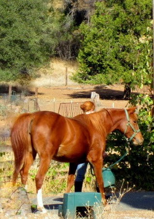 We walked all about and she was very polite and overall just acted grown up and sensible! The worst I saw today was some shuffling about while trimming right right front hoof, but so minor. She started to resist when she saw the de-wormer syringe but I confused her switching sides quickly and she munched the wormer down passively.