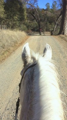 Anyway. I hadn’t ridden my own horses in way too long and my plans were stymied by random cold grey weather yesterday, so Scrappy and I enjoyed a relatively brisk 10 mile tour around the local dirt roads in the sunshine this a.m. It was pretty quiet, we were only passed by about four cars and a motorcycle. Chilly enough to goosebump your skin in the few shadows where the sun hadn’t hit yet but quite warm enough that I was sweating in just a long sleeve shirt jogging along.