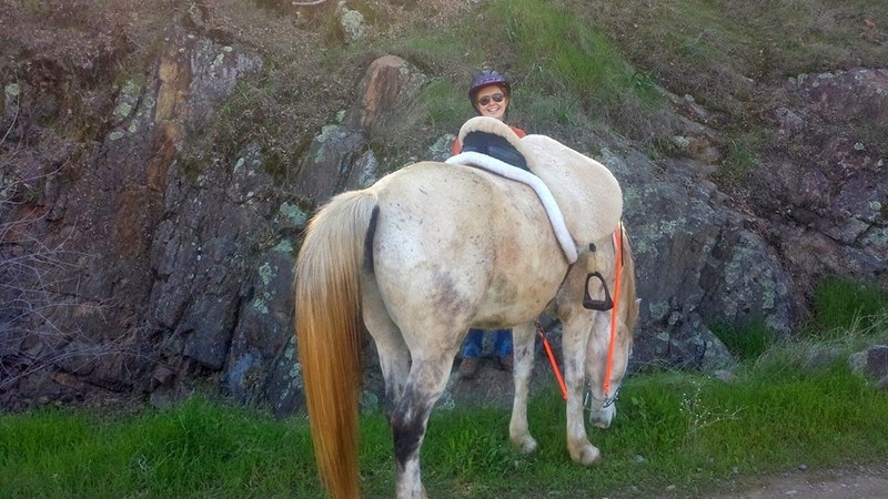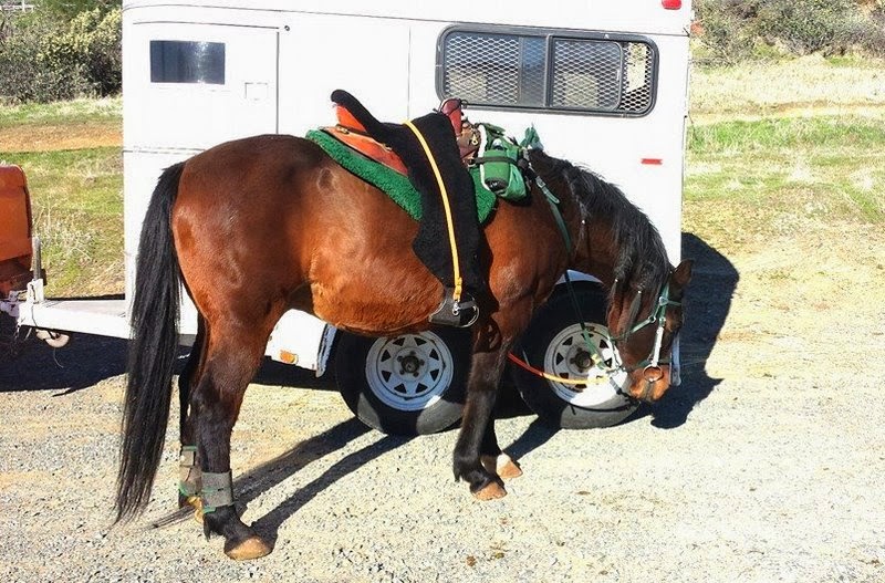 Here I stand on my rock, waiting for my starvatious horse to be able to stop eating long enough to lift his head so I can mount. L-O-L