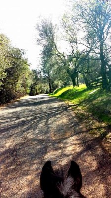 Frankly, the photo above is how I feel about that. Sure popping his head and trying to jig and being a little shitty isn’t ideal, but then again it tells me that my otherwise quiet and polite fella is feeling mighty good and has opinions to express. No worries, mate, but never forget who’s boss! He got a few reminders, yesterday, that’s for sure! My big grin is also related to the huge, swinging, straight downhill walk that Scrappy exhibited heading towards home, a walk that I could barely hustle my little legs to keep up with. I am very sensitive to how my horses go downhill since the whole Desire/hocks thing and it was just fabulous to see him trooping away with ears pricked and solid enthusiastic strides.