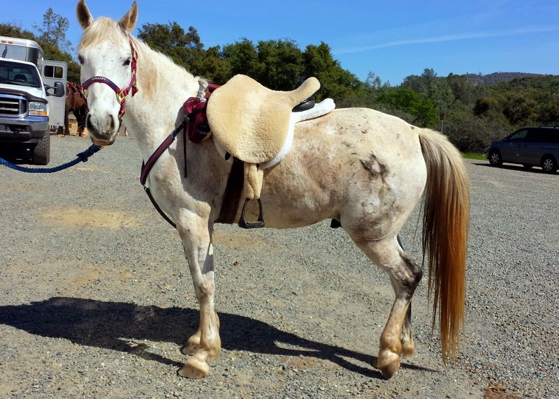 I had plans to try Renegade Vipers on Blaze on the 6 mile horse camp loop this a.m., while simultaneously babysitting fellow blogger Mel on her 4 yr old project. This morning I got Blaze all tidied up to go but when picking out his hooves I noticed that he had an abrasion and bit of a soft spot on his left hind heel bulb. Since he goes bare in the hinds and there is no way to protect that spot I decided to have him sit this one out, since there is no point turning a nothing into a something. We rode on very rocky trails at Whiskeytown this past Saturday and that spot no doubt came about from that. This is my ultimate legitimization for having multiple solid riding horses put into action, as I was able to let Blaze have his day and pull Scrappy out to babysit instead.