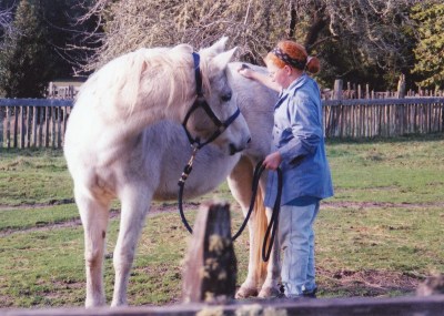 I’m probably about 13 in the photo below. When we moved to CA in 1997 I was delighted to discover our neighbor had a ranch. More importantly than that, he had an old grey Arab mare of uncertain descent, with an undeniable hay belly and the somewhat fitting name “Pretty Lady,” which rolled out of the even older rancher’s mouth in just such a way as I’ll never forget. I had a very special relationship with that old guy, “Jake” as we knew him, of Jacob’s Ranch Road. He and I drove to the local inn and picked up the compost scraps from the inn to feed his livestock regularly, “fixed” fence with baling twine, and took in the inevitable death of the many inbred ranch cats with laconic monosyllables. He discovered somehow early on that peaches were my favorite fruit and every day after chores we’d head for the cool old ranch house, which was ancient and full of old newspaper clippings, photos, book, bits of old tack and who knows what. Jake would pop open two cans of peach halves and we’d sit at the table and savor our treat, sometimes sharing stories but often just sitting in peaceful silence. He called me “Young Lady.” That makes me smile right now, typing it.