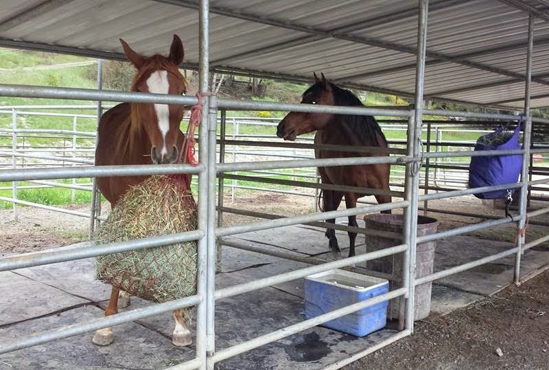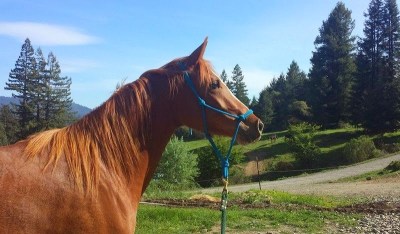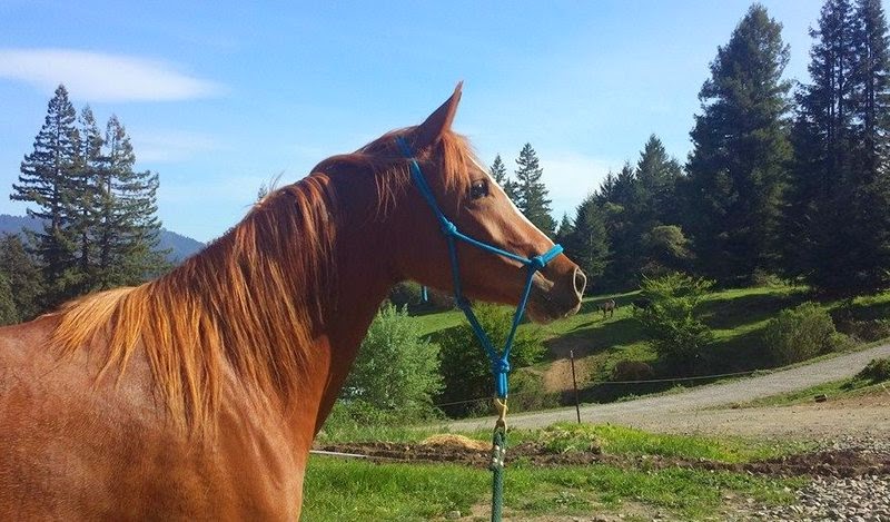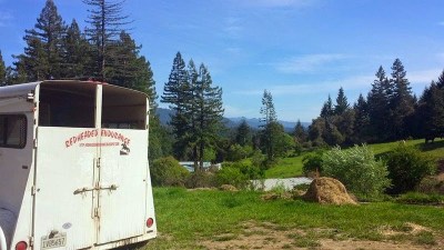 We left Monday morning with both my green beans loading up quite nicely, and it was an easy 5 1/2 hr haul on the 20 and 101. Sheza wiggled like a fish in the trailer and hollered for the first couple of hours but it was an otherwise uneventful and mostly familiar drive, as I take that route from the valley to Willits and on home to family on coast often. From Willits north it was just a gorgeous drive and before we knew it we were in a different sort of horsey paradise than our own: