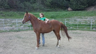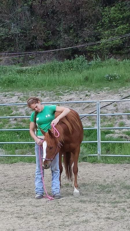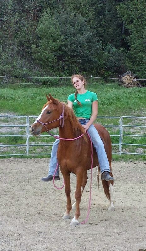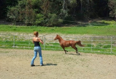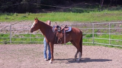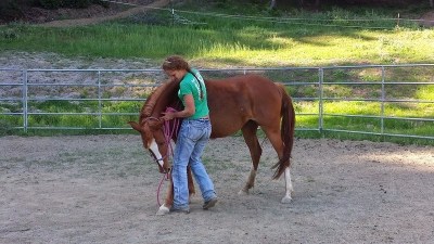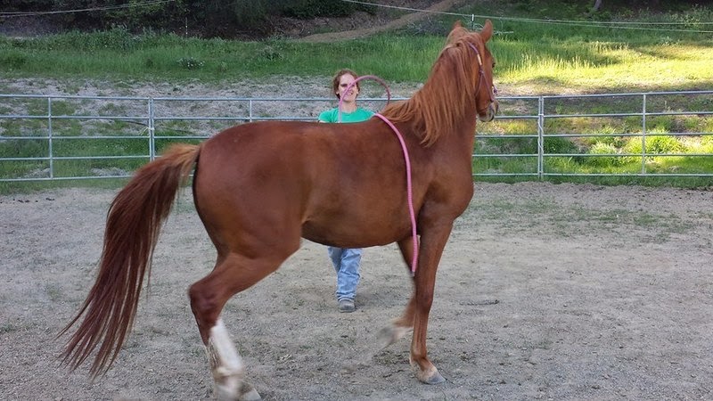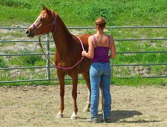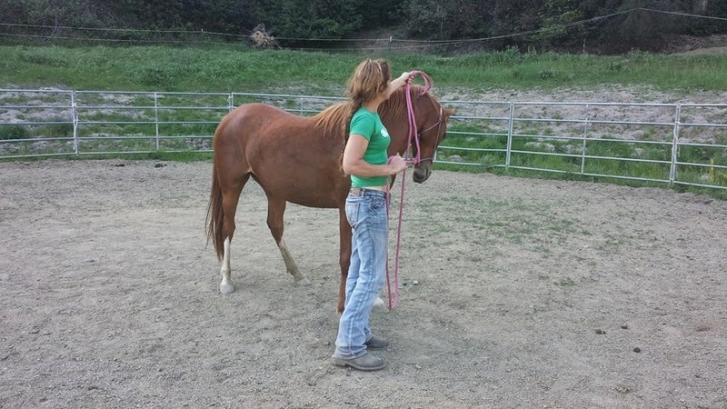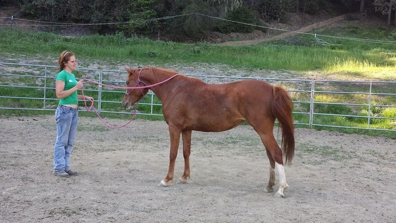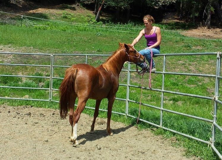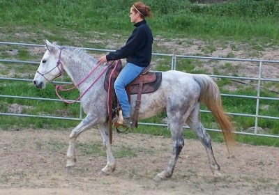 Here is another of April’s horses in training that she rode that day. He is a really cute and smart 8 yr old Morab gelding who came in halter broke (with some attitude) and has only been there for about 2 weeks. I think the relaxed expression says it all.