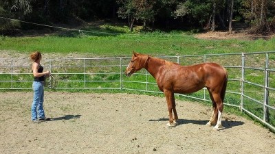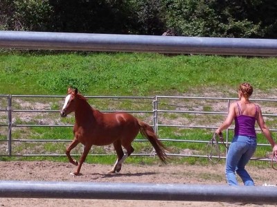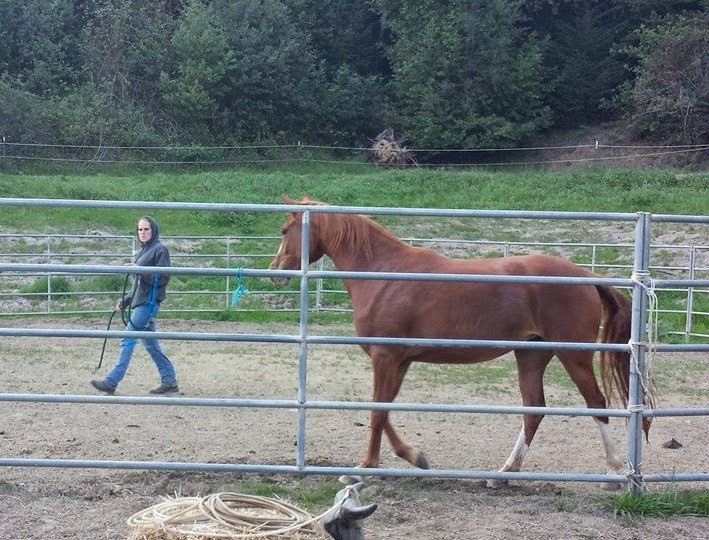 Greetings and first horse “whisperings” with April 😉   Redhead Power!