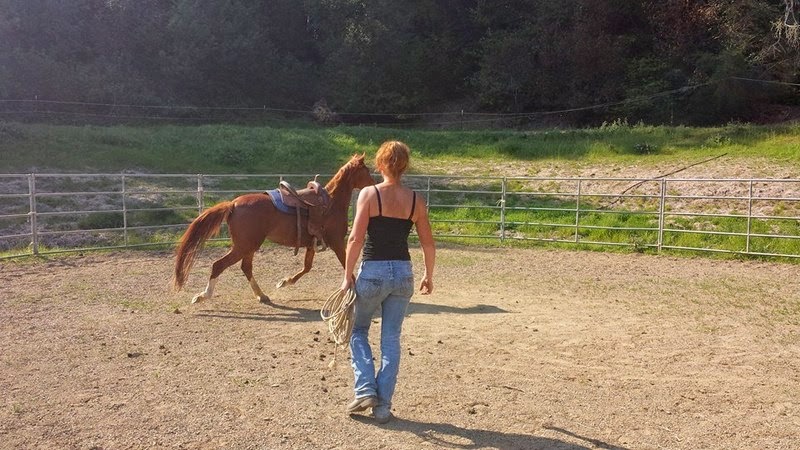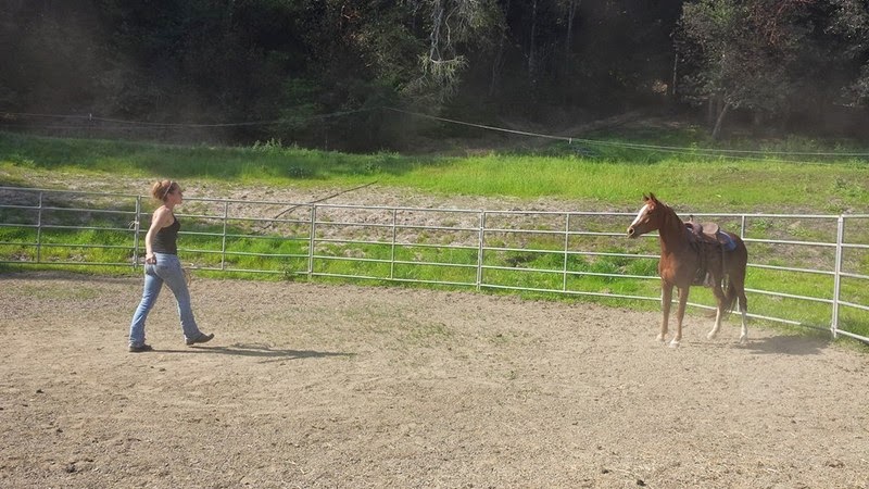 Moving out with the saddle and stirrups was new, and April let her just figure it on out and burn off what excessive energy she needed to until she was ready to engage again.
