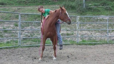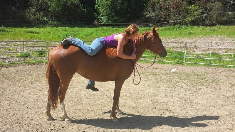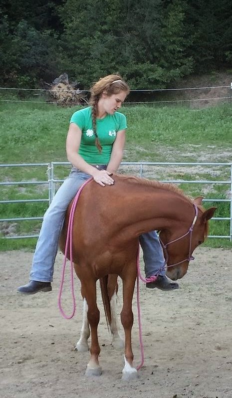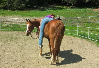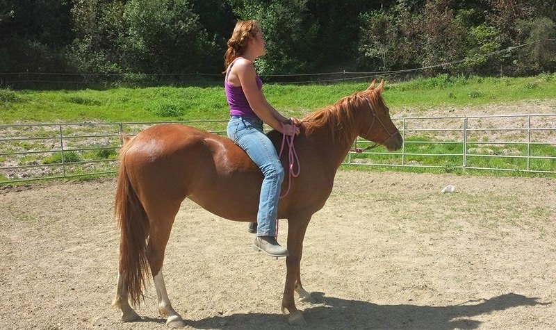 Anyhow, day 2 started with some ear handling, visited the long rope all over the body and head area, revisited bareback mounting from the ground, and finally worked back to the dreaded ear.