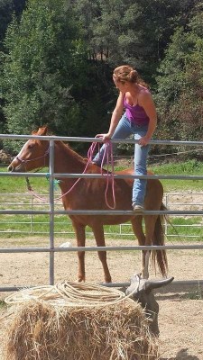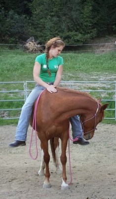 Me on Daisy, ponying Spirit